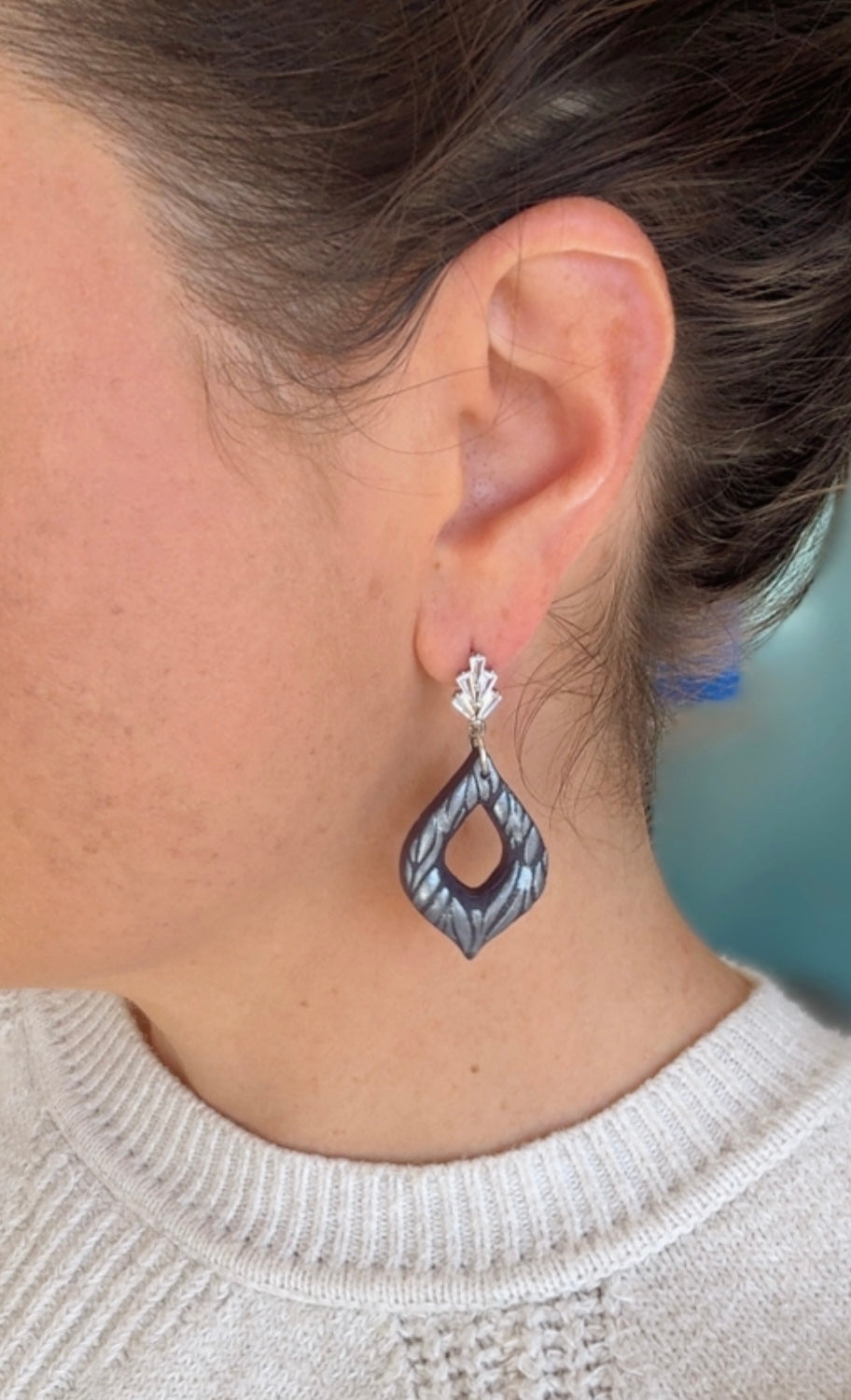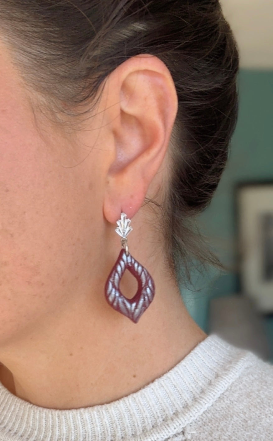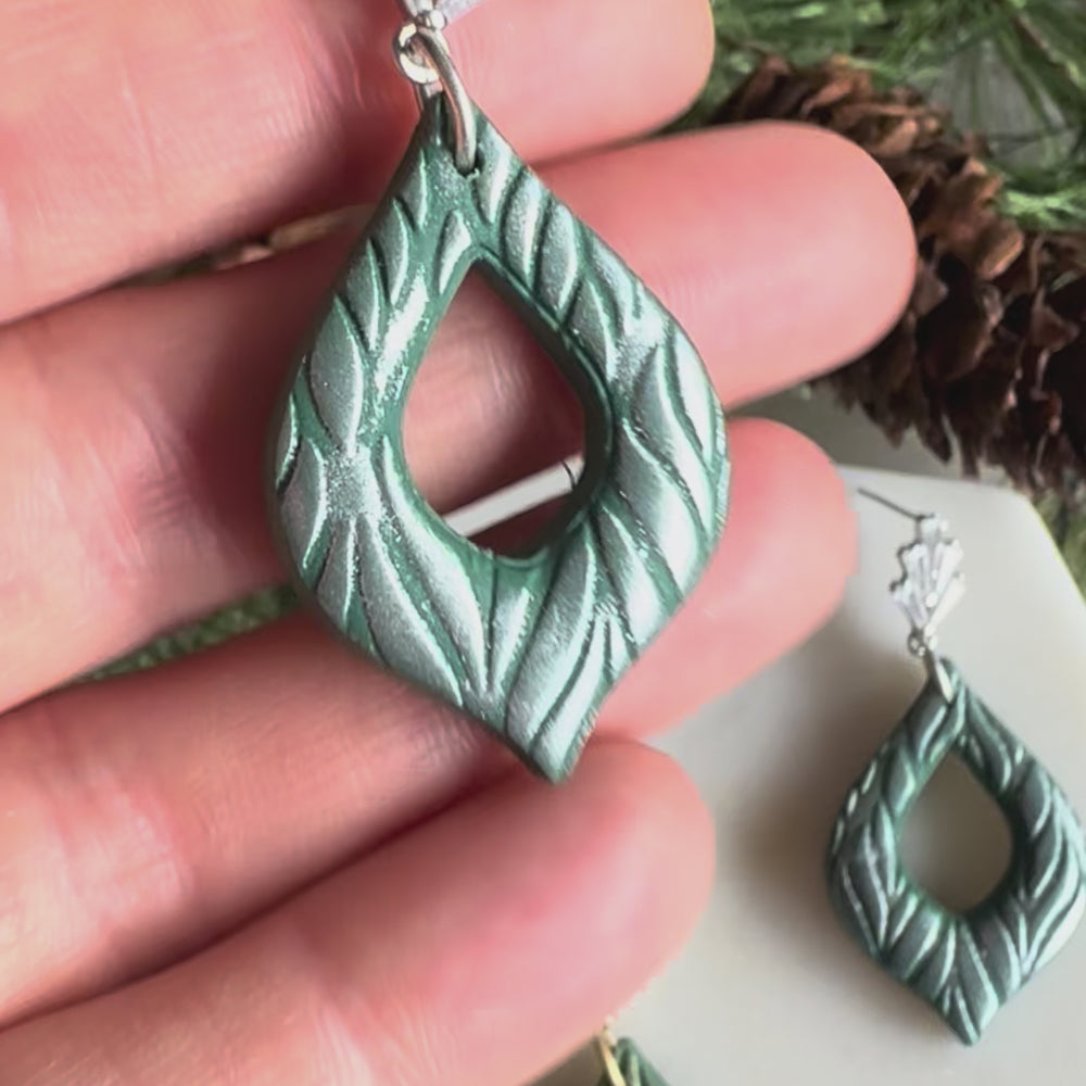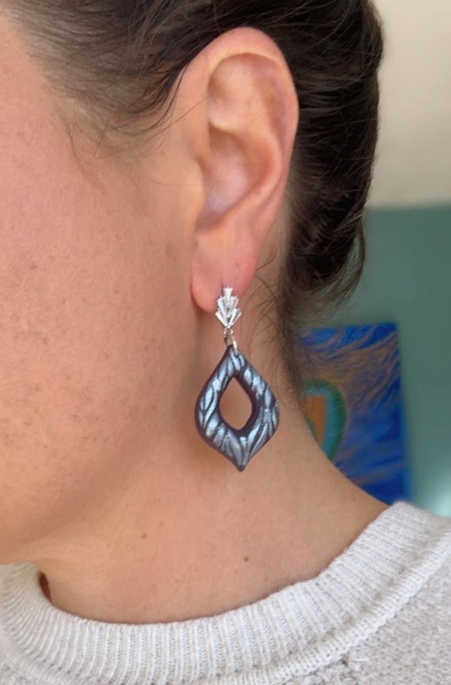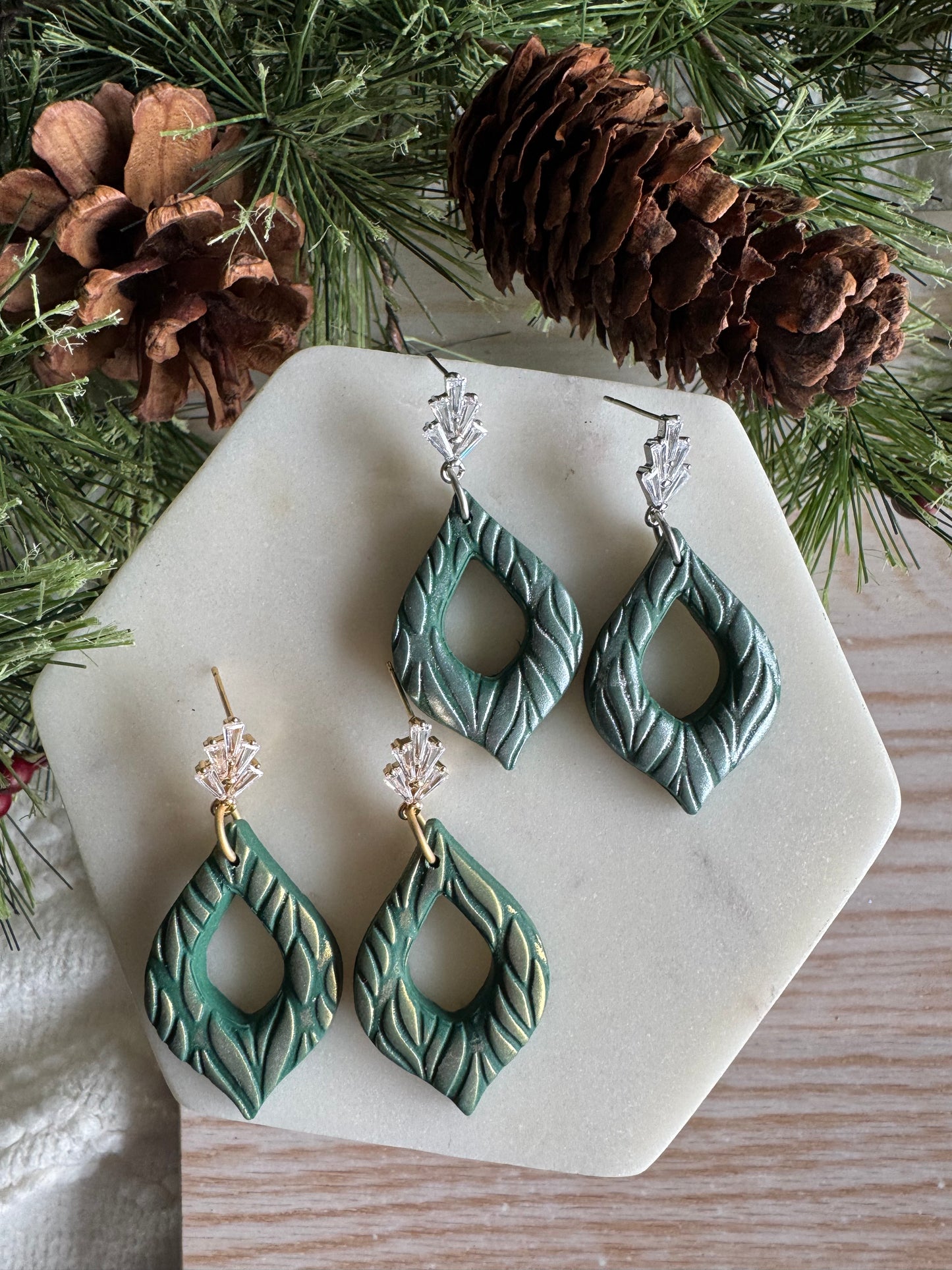 Beautifully textured clay in jewel tones featuring gold or silver accents. Inspired by vintage ornaments, our clay statement earrings are lightweight, finished on the front and back and are attached to a glittering cubic zirconia ear stud. All findings are nickel free. Choose your color and finish! Every pice is handcrafted and unique.