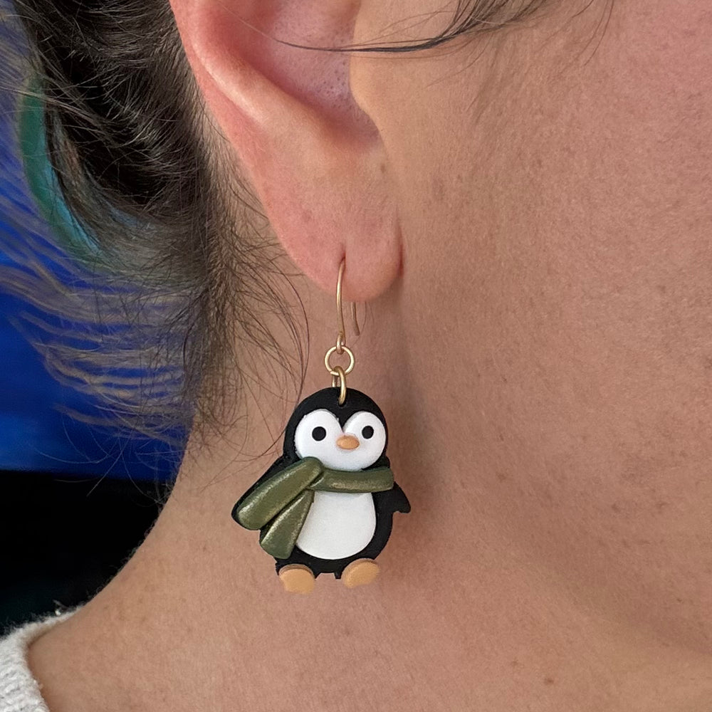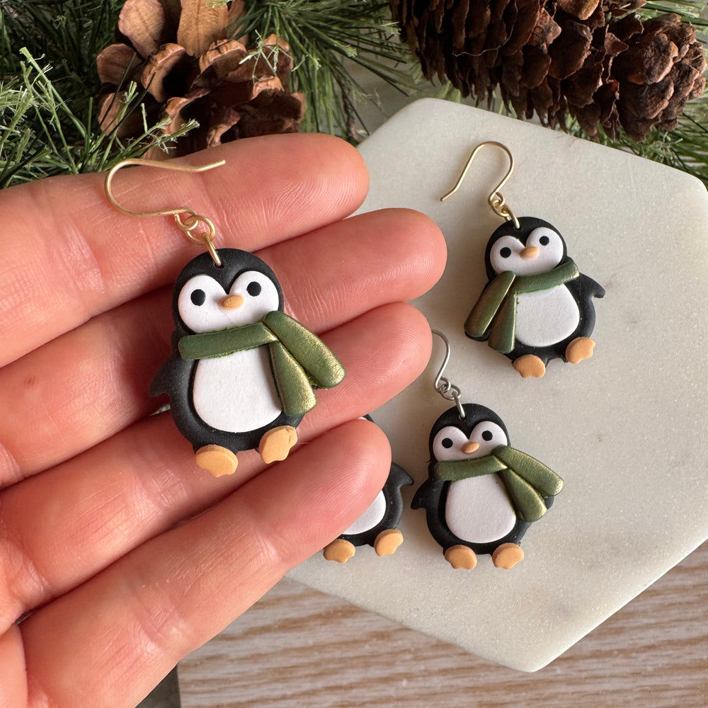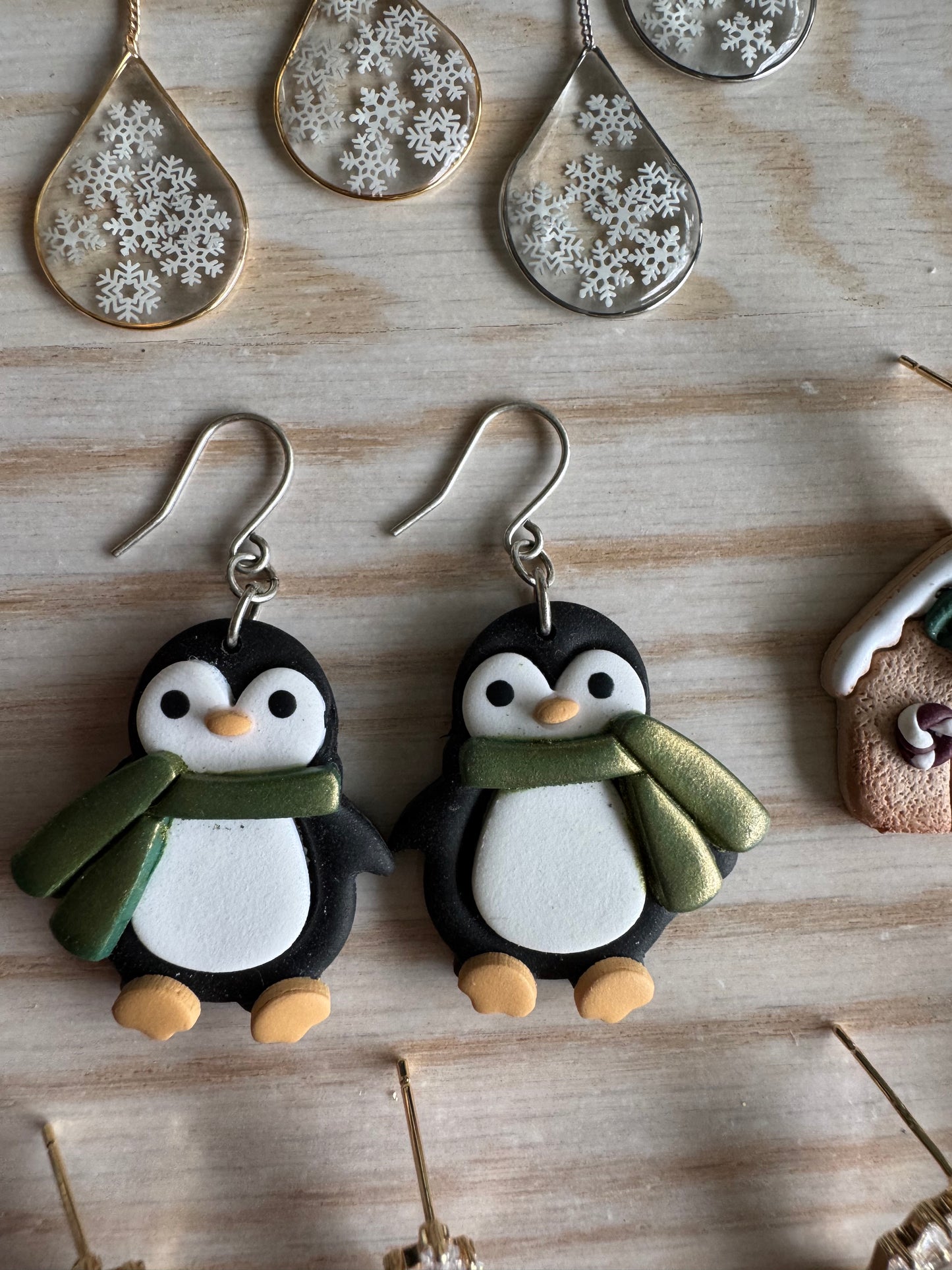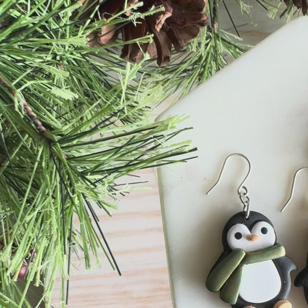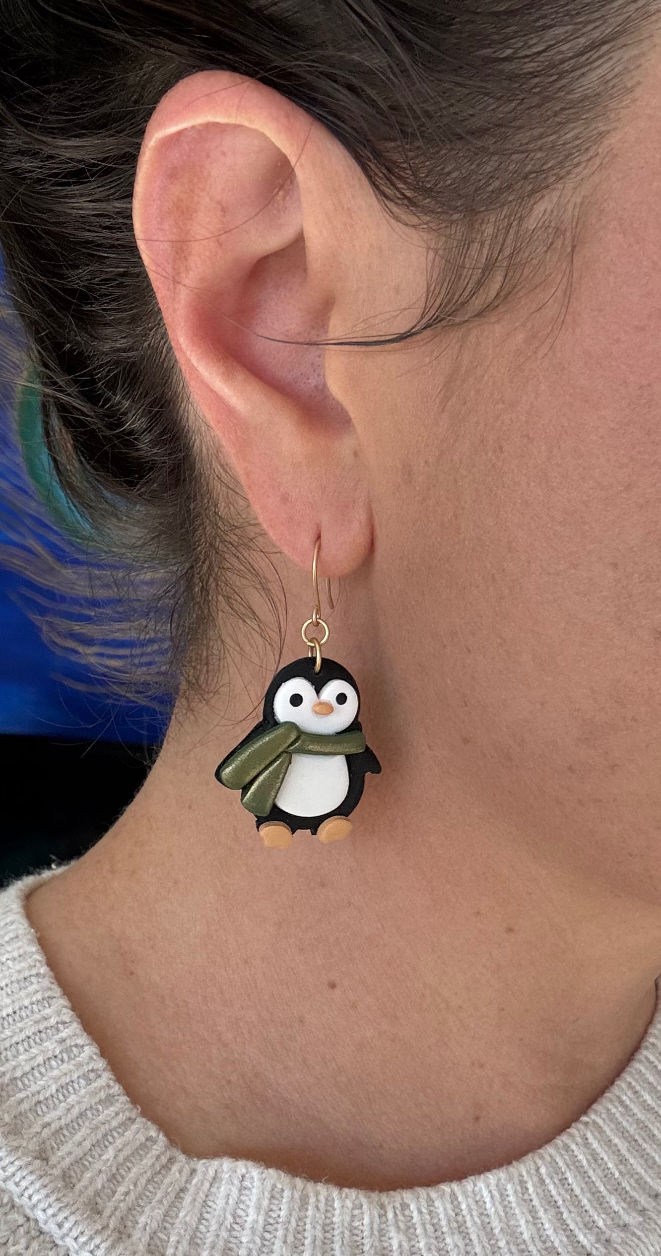 Super cute penguin clay earrings with a silver or gold ear wires. Our materials are all nickel-free. Our pieces are lightweight and individually handcrafted with lightweight clay.