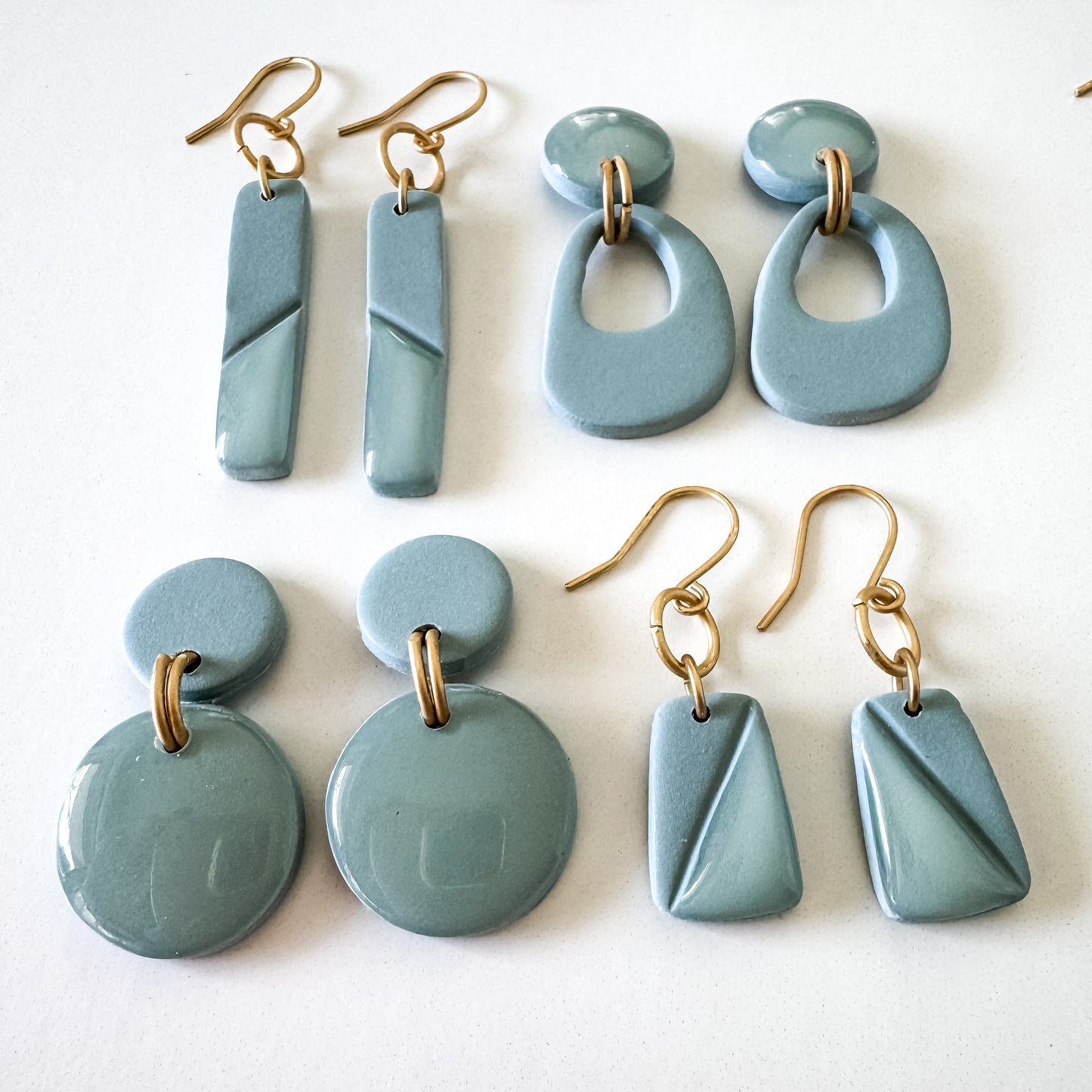 Spring Sorbet Collection -Soft Ocean Blue Clay and Resin Earrings