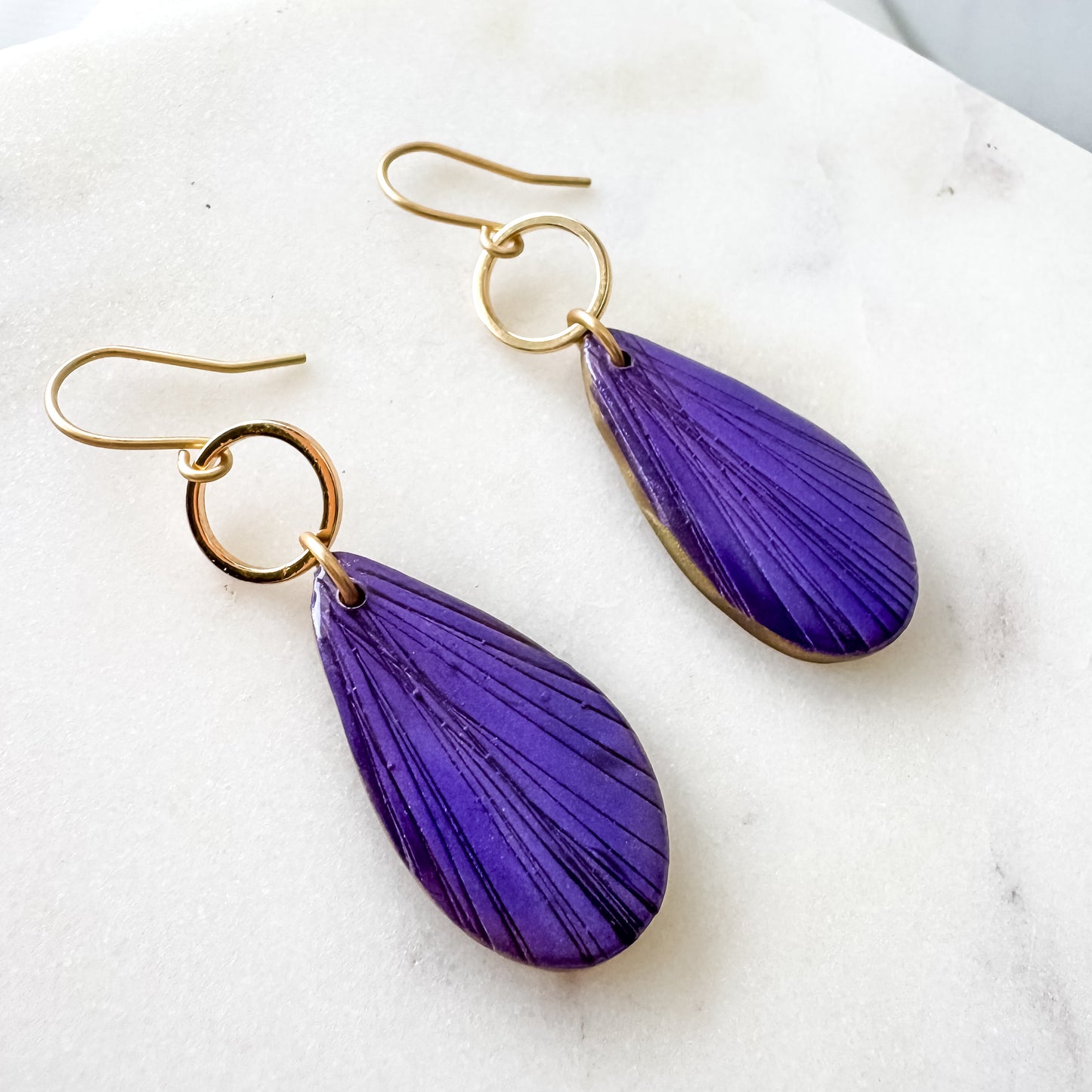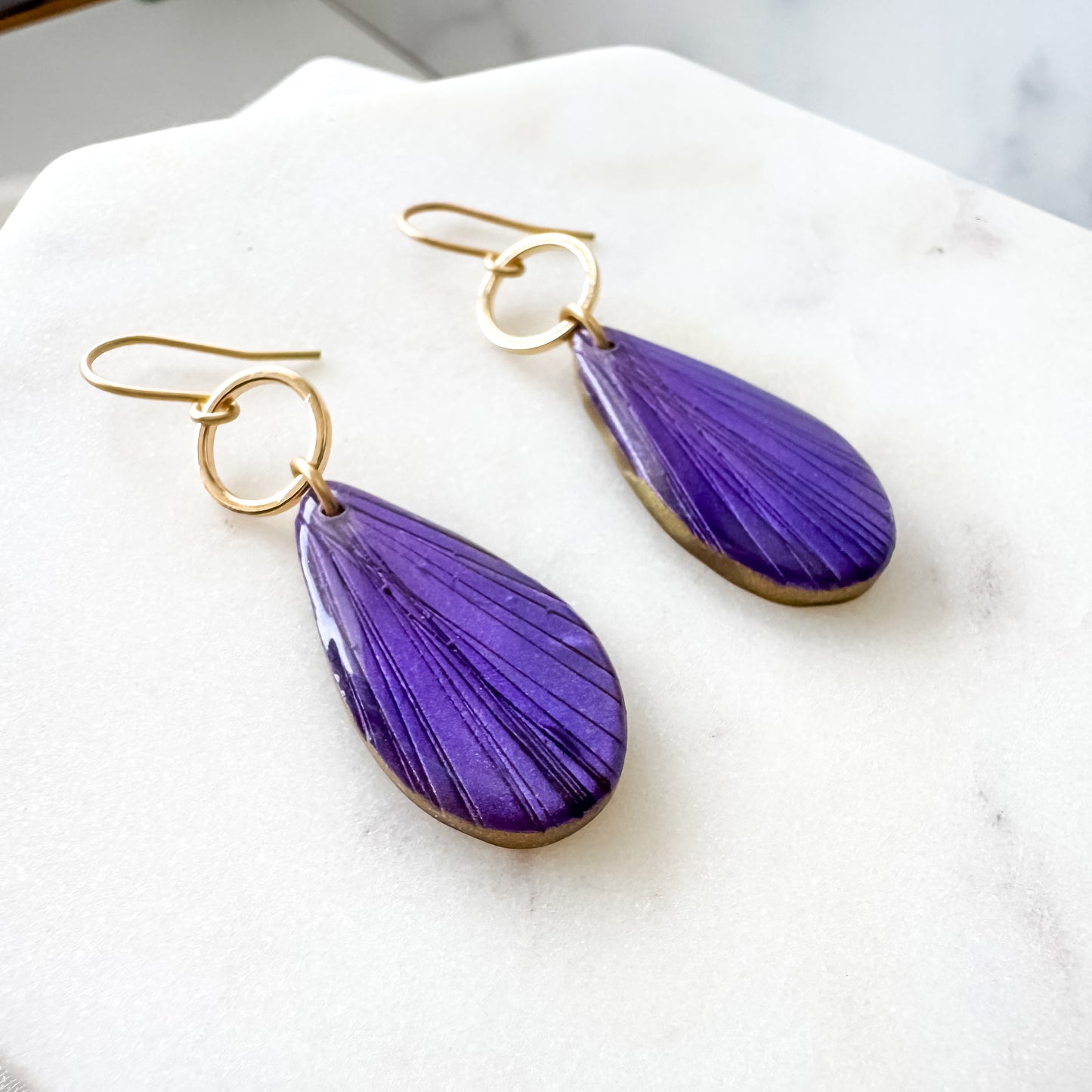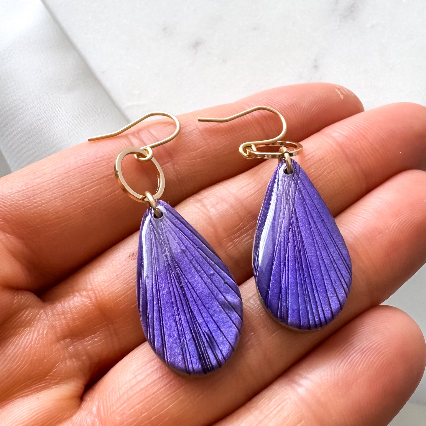Our Glimmer Collection features vibrantly colorful mica powders blended on clay and finished with resin. They change color slightly depending on the light and angle! The earrings are super LIGHTWEIGHT and easy to wear all day, and the ear wires are NICKEL-FREE!