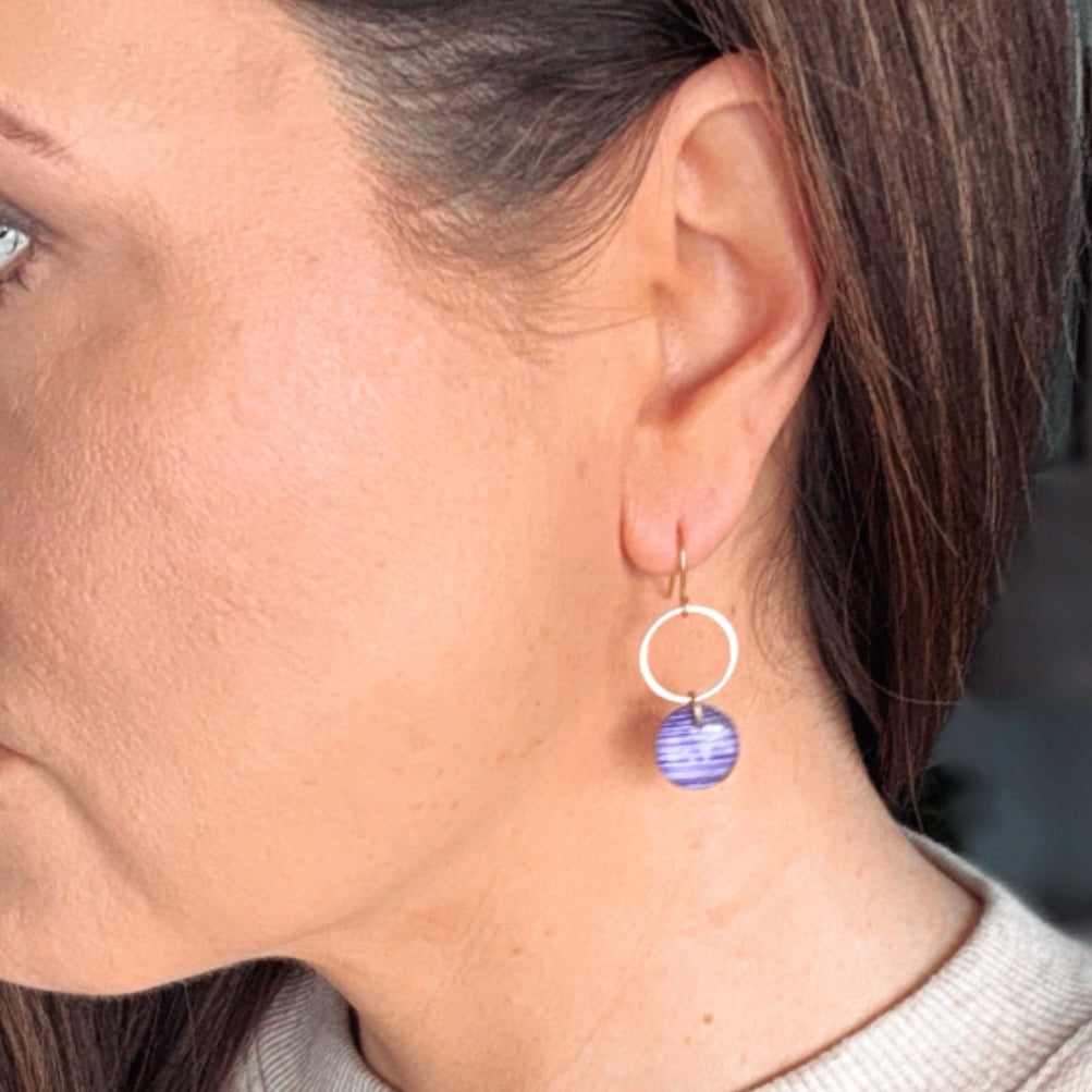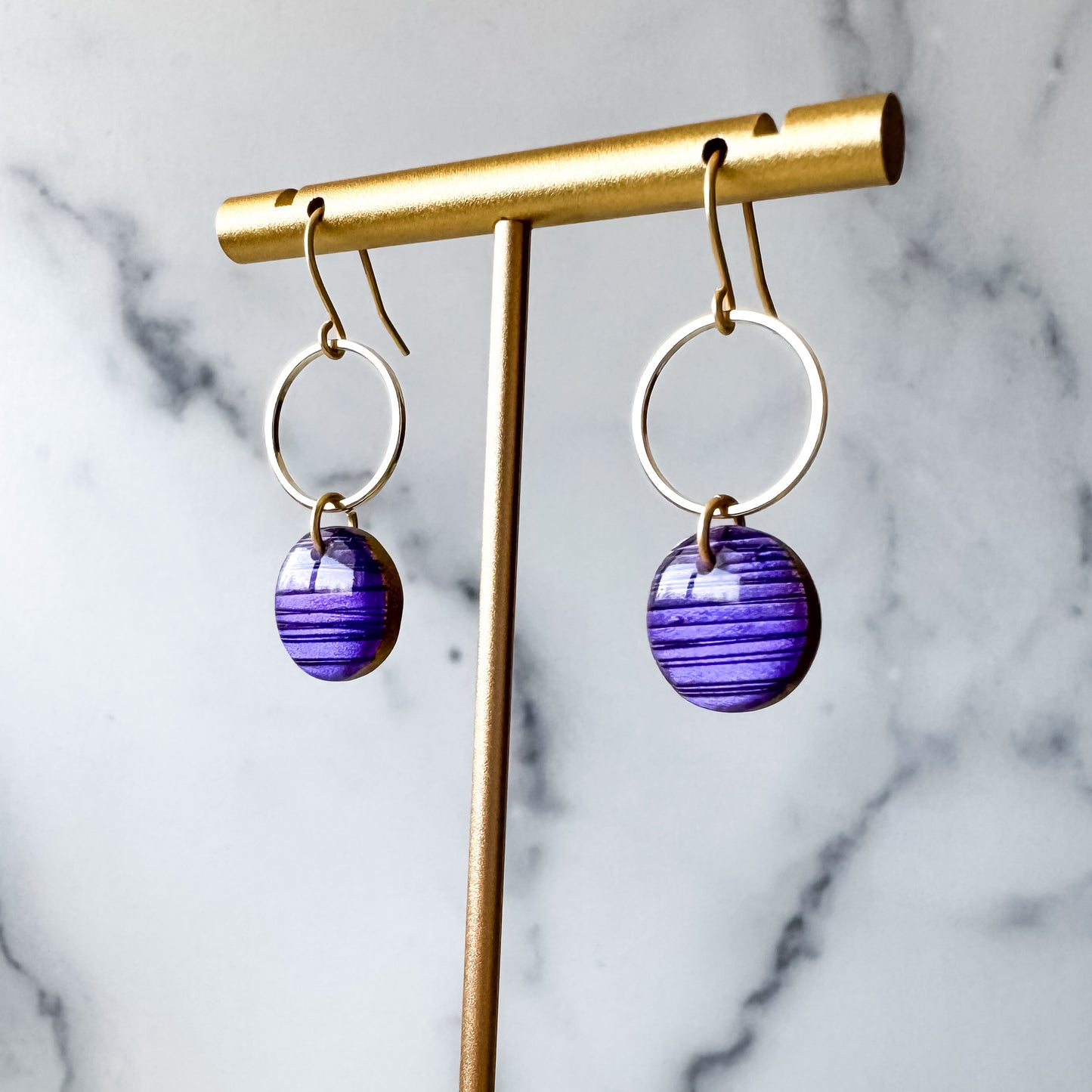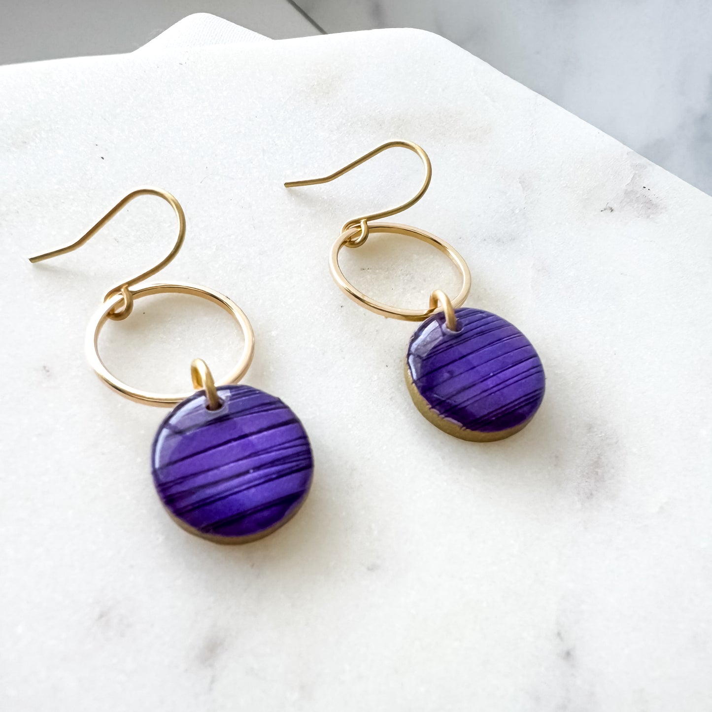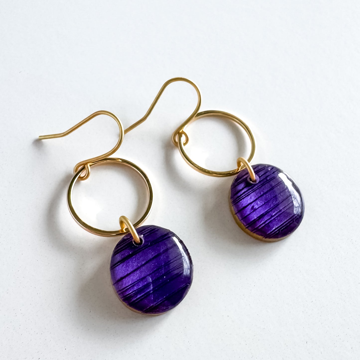 Our Glimmer Collection features vibrantly colorful mica powders blended on clay and finished with resin. They change color slightly depending on the light and angle! The earrings are super LIGHTWEIGHT and easy to wear all day, and the ear wires are NICKEL-FREE!