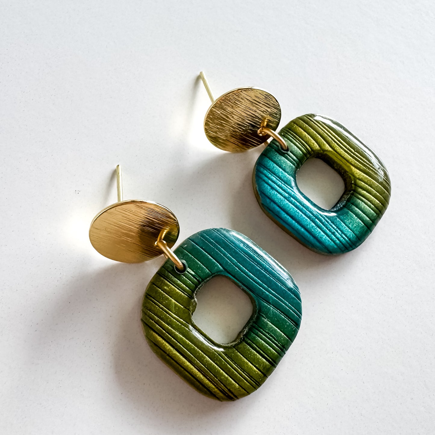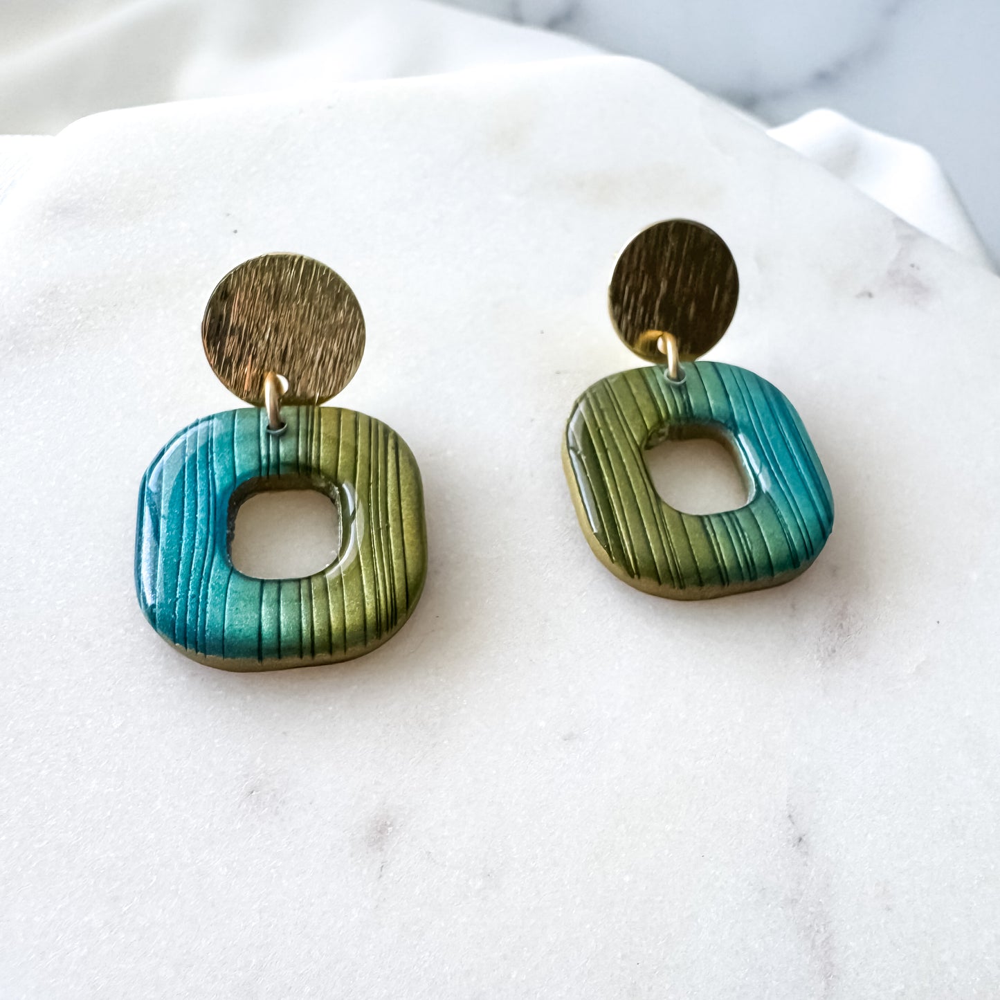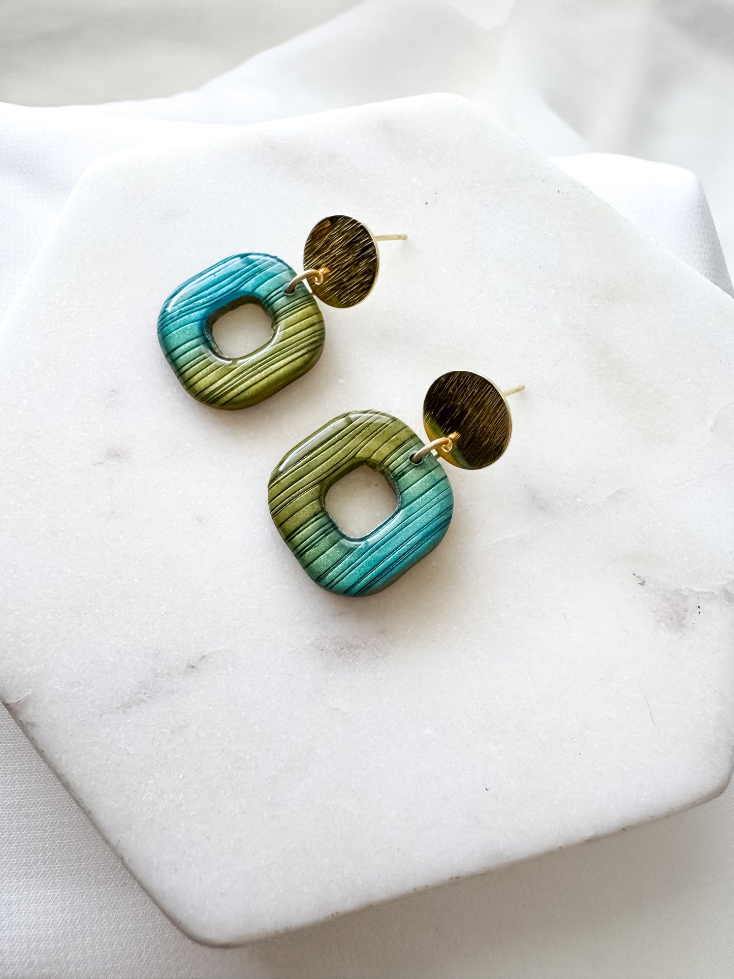 Vibrant Green and Aqua Clay Statement Post Earrings