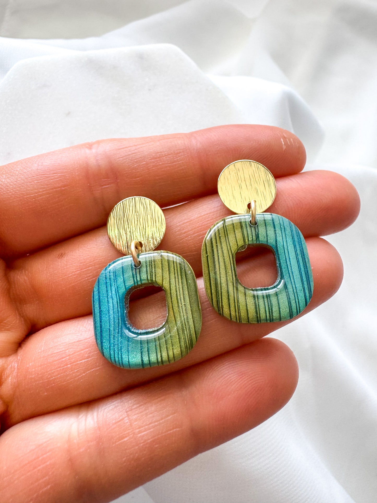 Our Glimmer Collection features vibrantly colorful mica powders blended on clay and finished with resin. They change color slightly depending on the light and angle! The earrings are super LIGHTWEIGHT and easy to wear all day, and the ear wires are NICKEL-FREE!