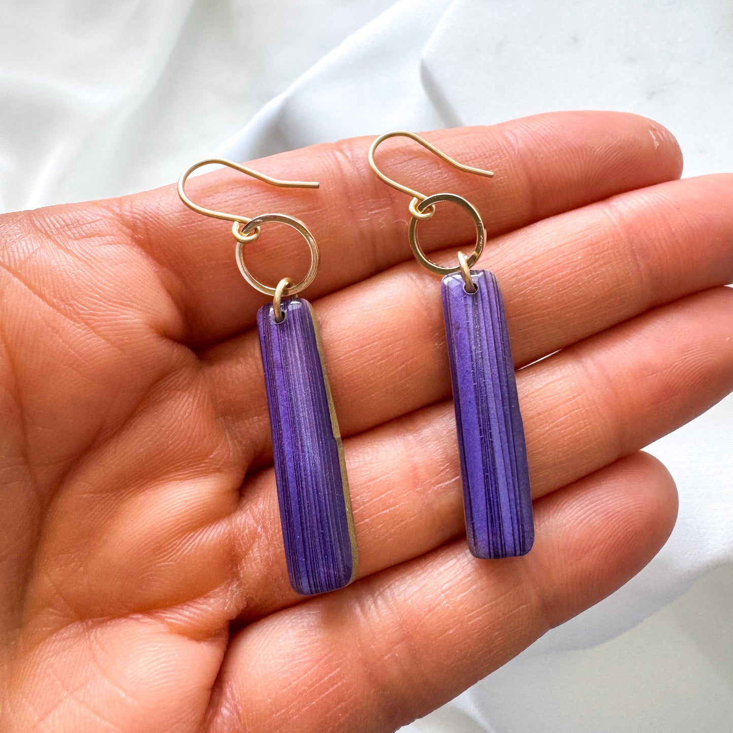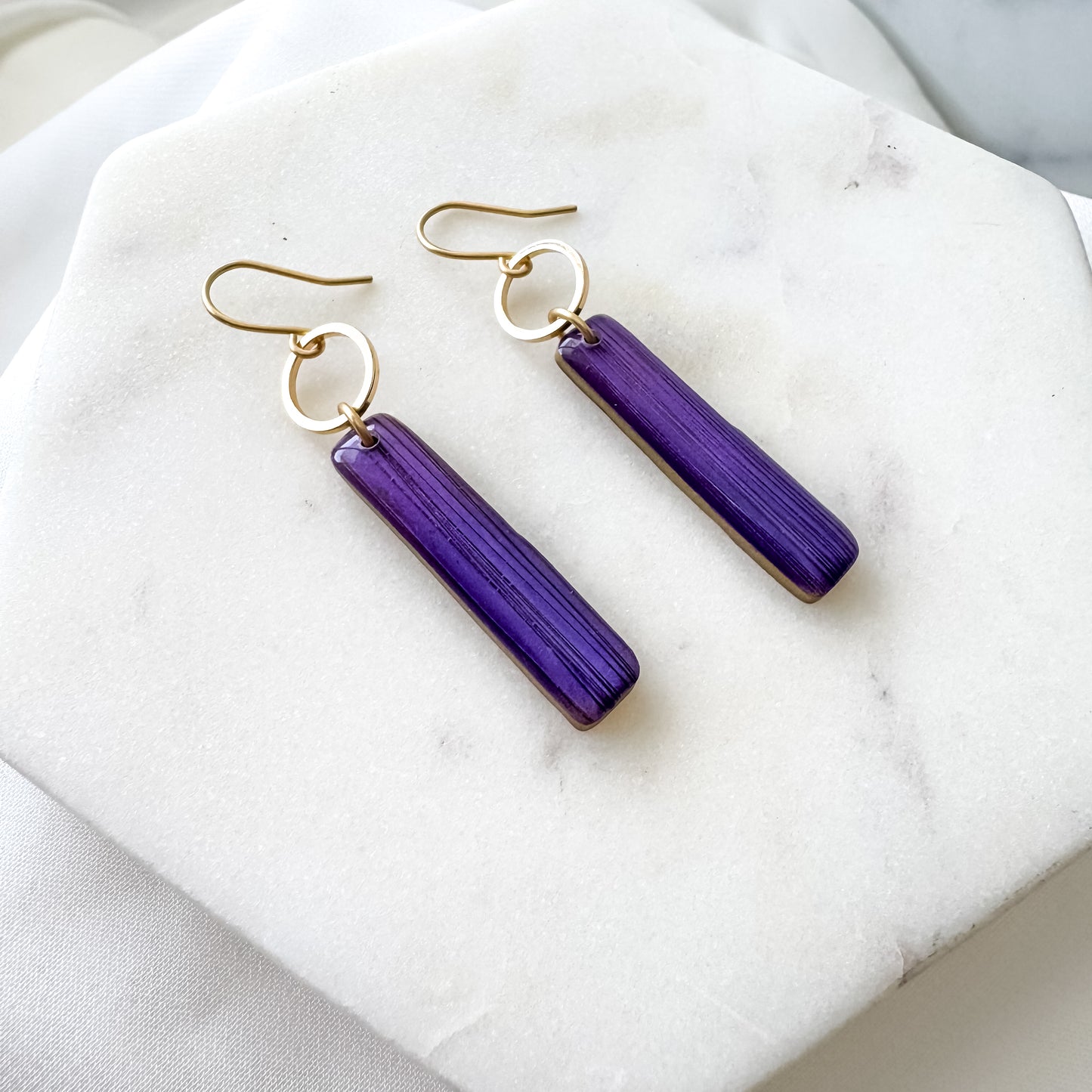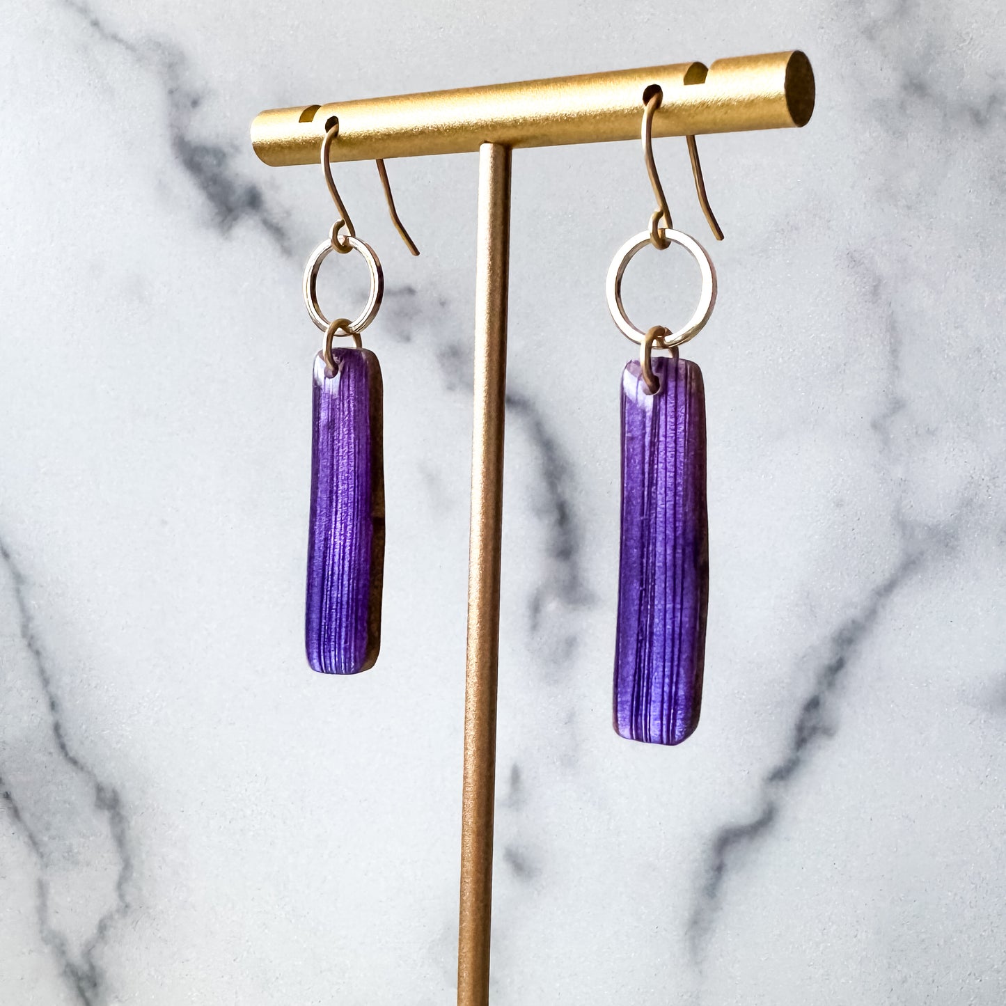 Our Glimmer Collection features vibrantly colorful mica powders blended on clay and finished with resin. They change color slightly depending on the light and angle! The earrings are super LIGHTWEIGHT and easy to wear all day, and the ear wires are NICKEL-FREE!
