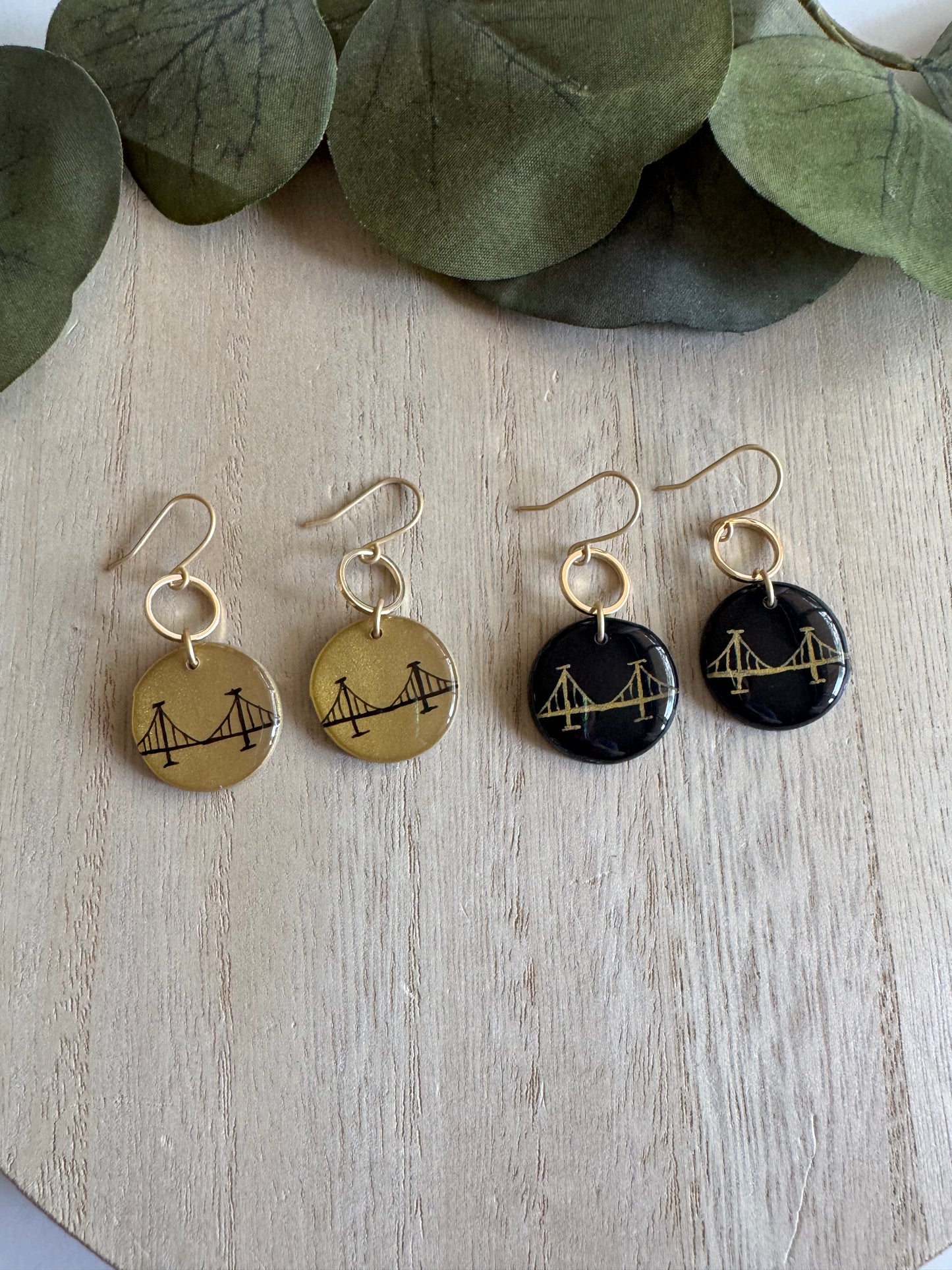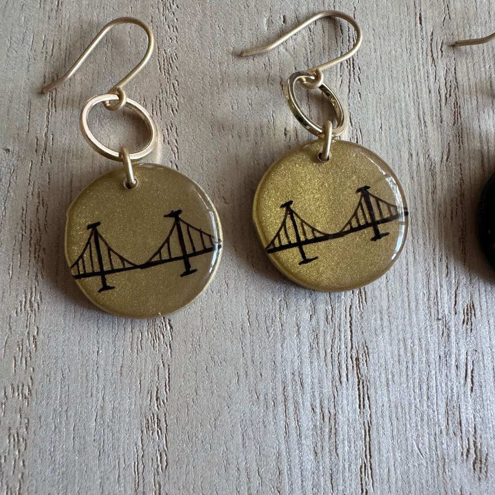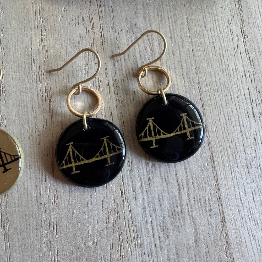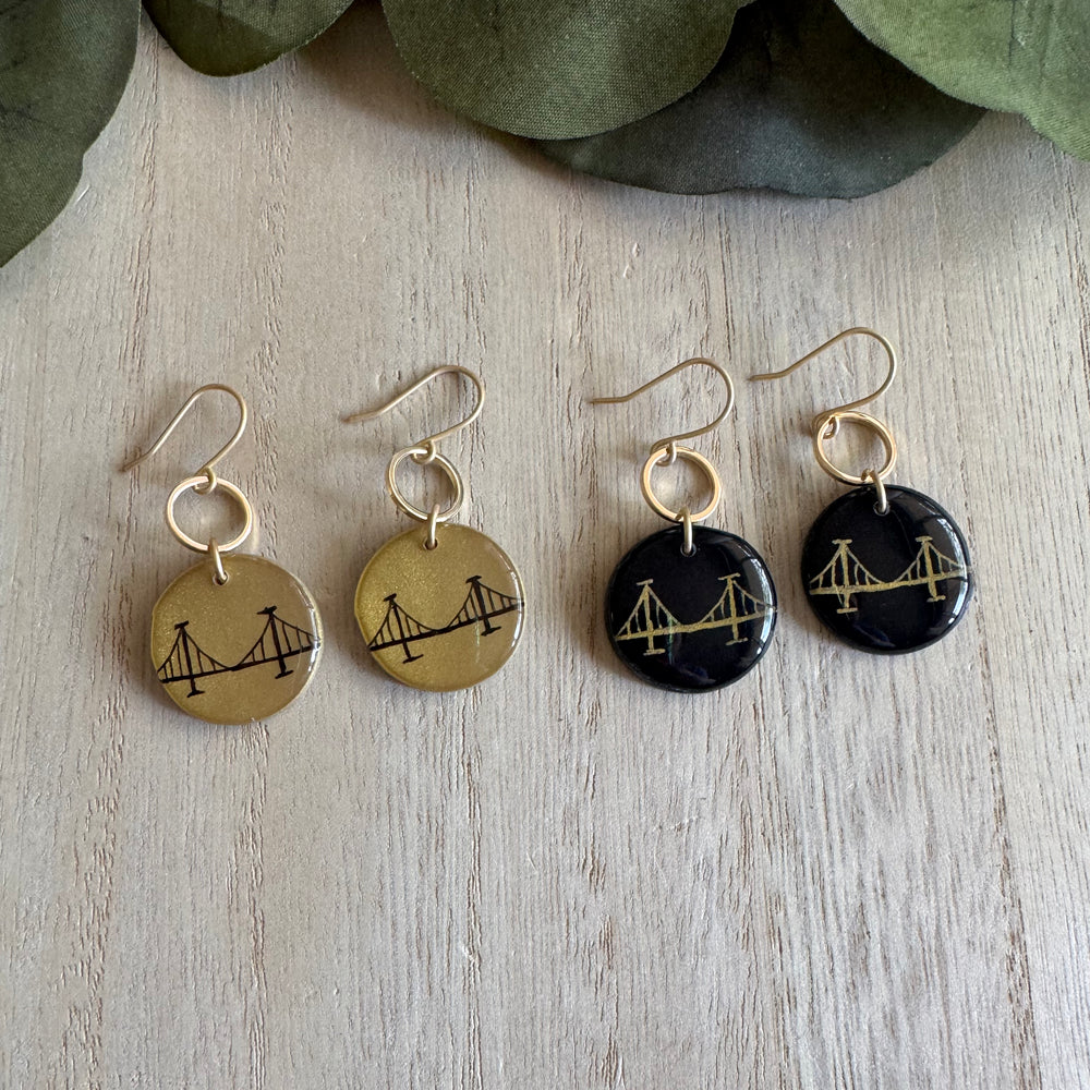 Lightweight clay and resin with nickel-free findings. Our bridge earrings pair perfectly with our Burgh Bridge Necklaces!