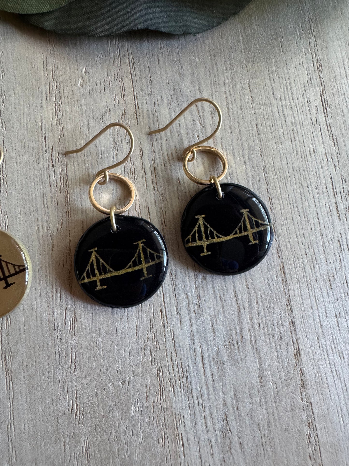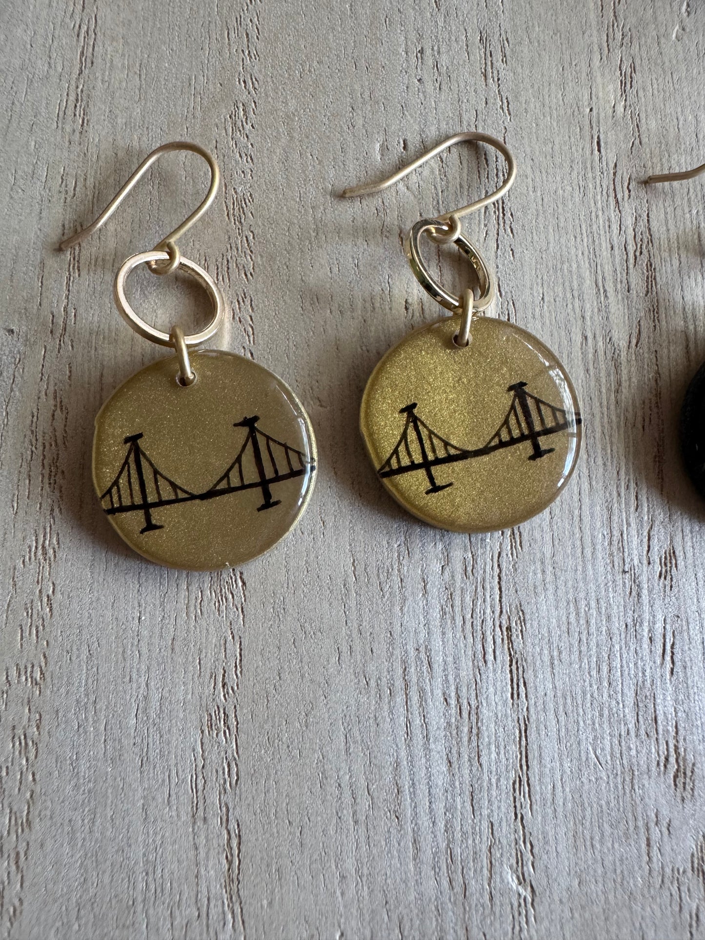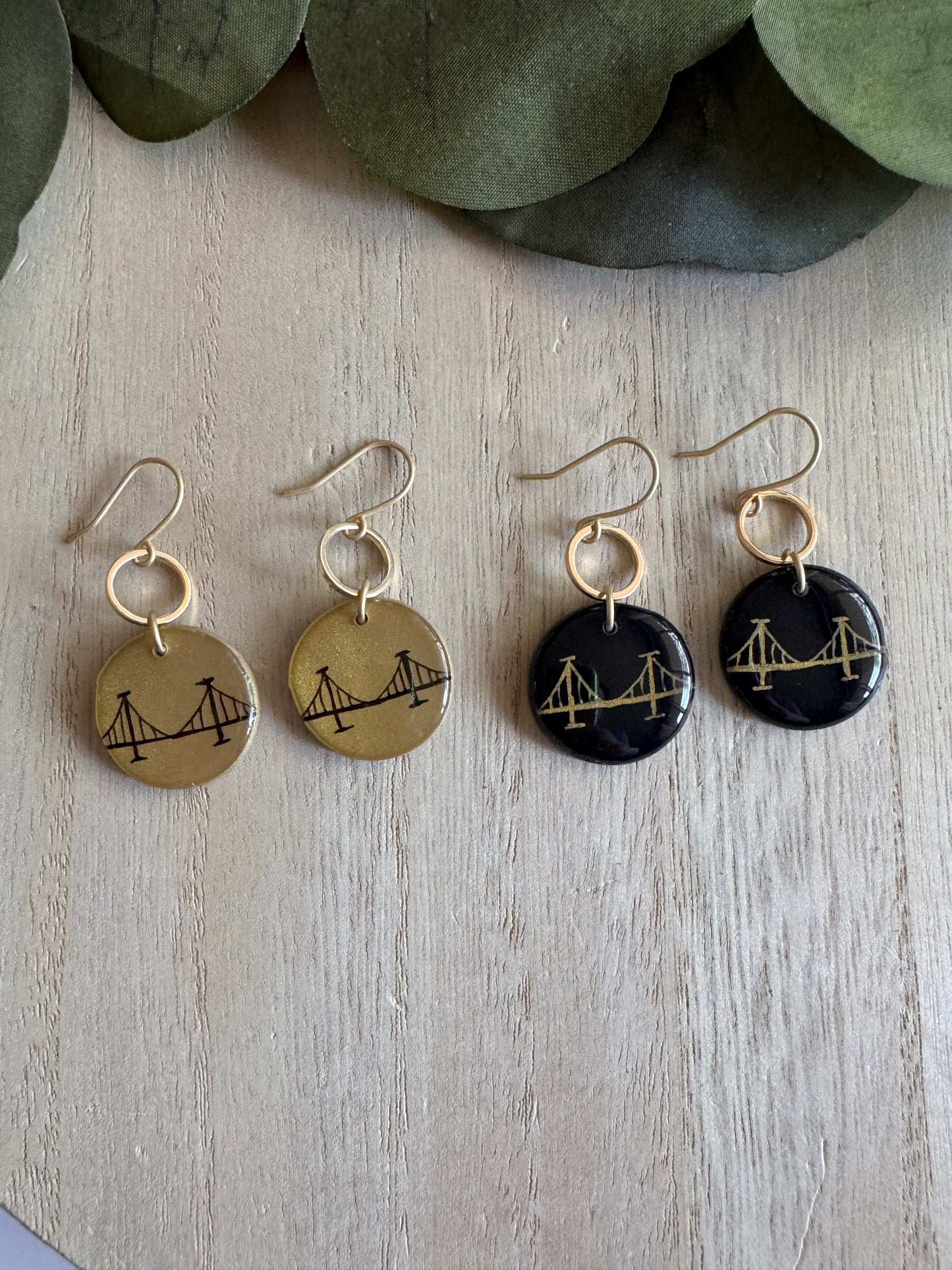 Lightweight clay and resin with nickel-free findings. Our bridge earrings pair perfectly with our Burgh Bridge Necklaces!