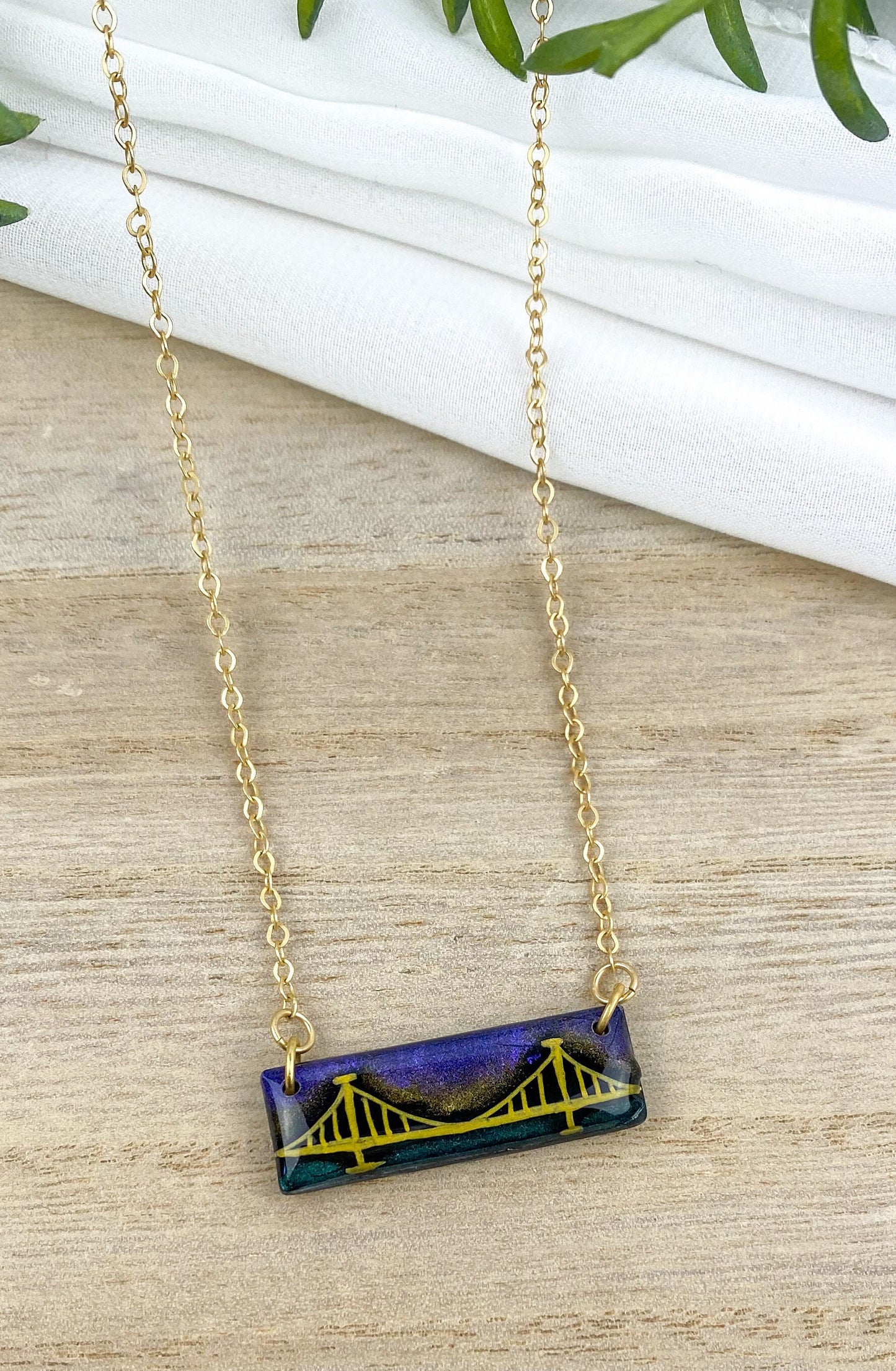 Hand Drawn Clay Pittsburgh Bridge Bar Necklace